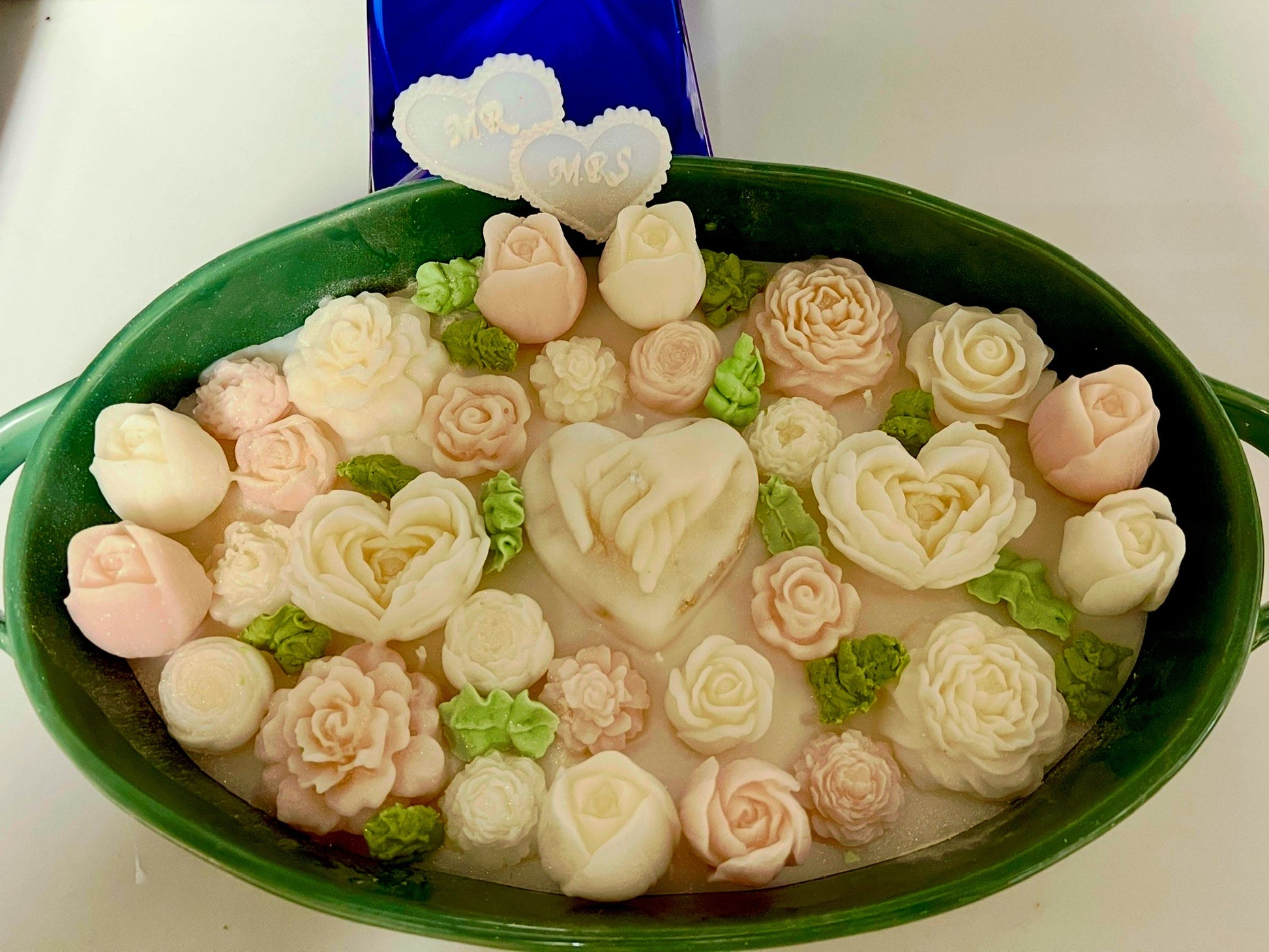 All candles are custom made. Typical turnaround time is 48 hours to ship. All candles take 5 - 10 days to fully cure, for maximum scent and color.